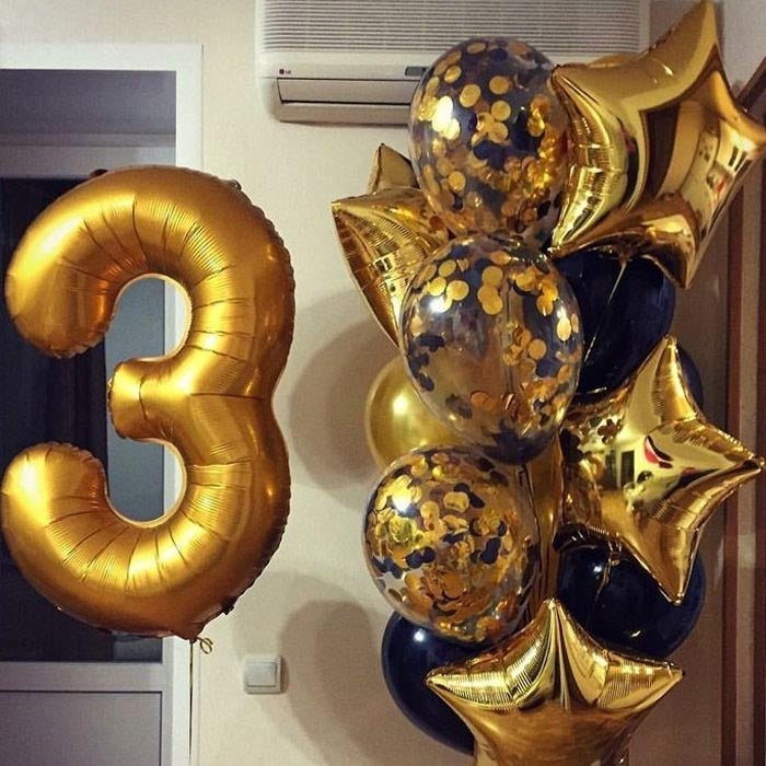 Набфр: цифра золото 100 см 1 шт, конфеті золото 3 шт, зірки фольга золото 4 шт, латекс кулька 10 шт (чорний та золото) - Із обробкою Hi-float