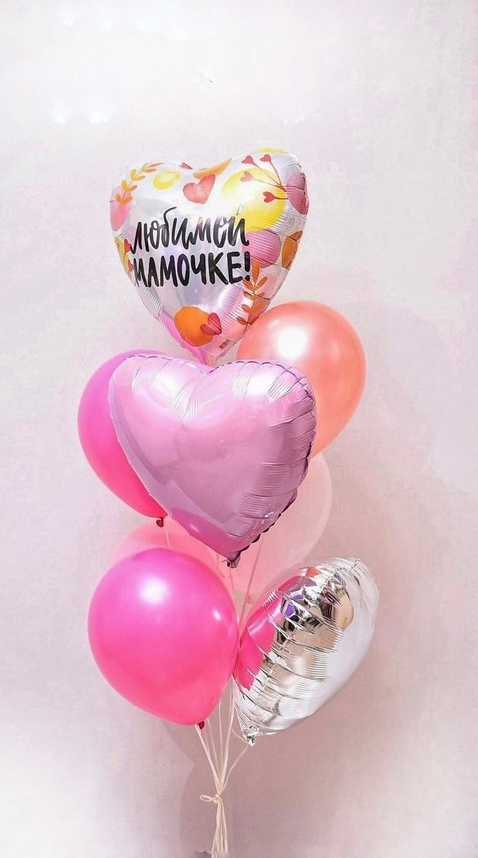 Набір ДЛЯ МАМОЧКИ : фольга Любимій мамулі, фольга сірий і рожеві сердця, 4 рожеві асорті - Із обробкою Hi-float