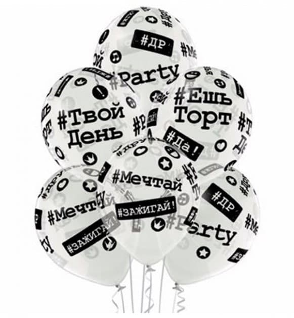 Набір до дня народження 7 шт: латексні чорні-білі #Їш торт, #Др, #Мрій - Із обробкою Hi-float