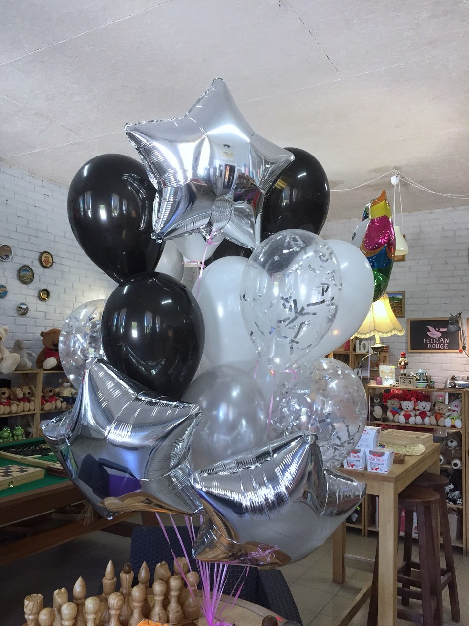 Набір кулька конфеті 4 шт; кульки чорні та білі 11 шт; зірки 3 шт - Із обробкою Hi-float