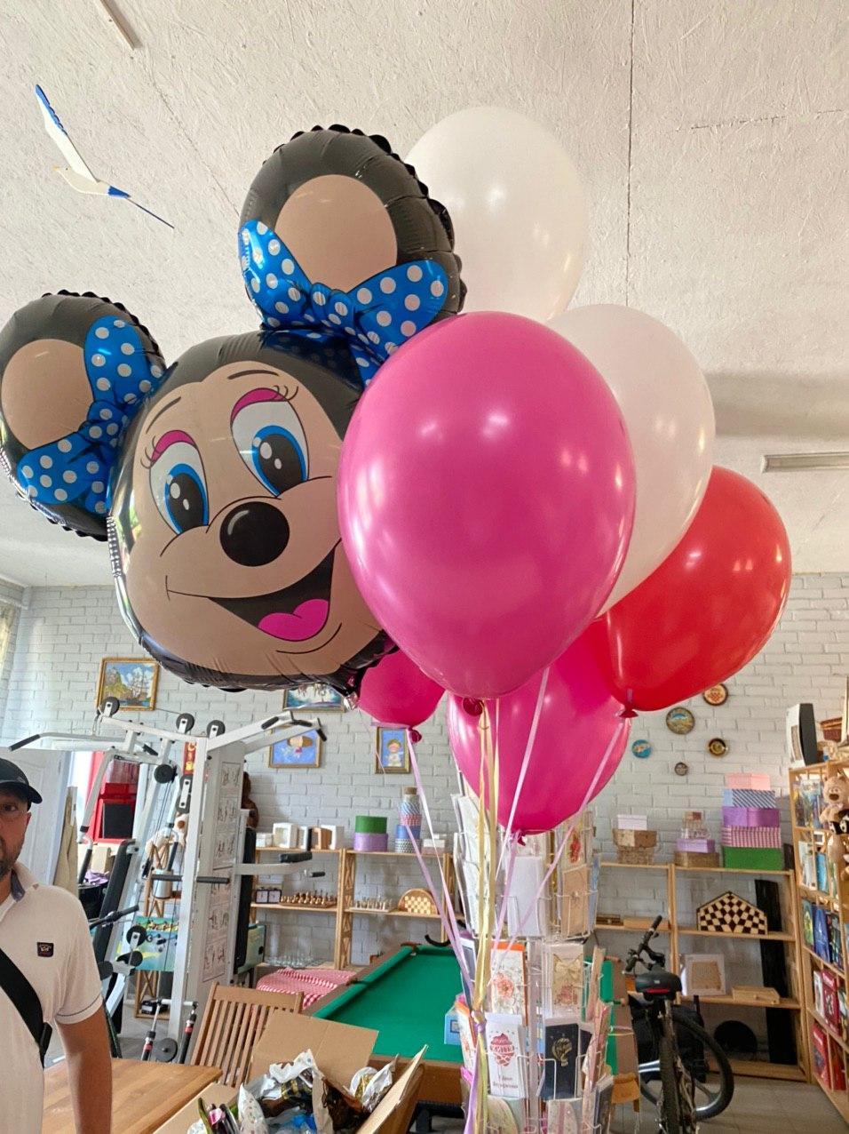 Набір Мікі Маус та 10 кульок латексних рожевий, білий та червоний - Із обробкою Hi-float