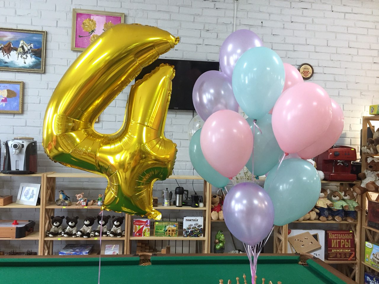Набір: цифра фольга золото 100 см 1 шт, латекс кульки 10 шт (бірюзовий, рожевий та фіолетовий) - Із обробкою Hi-float