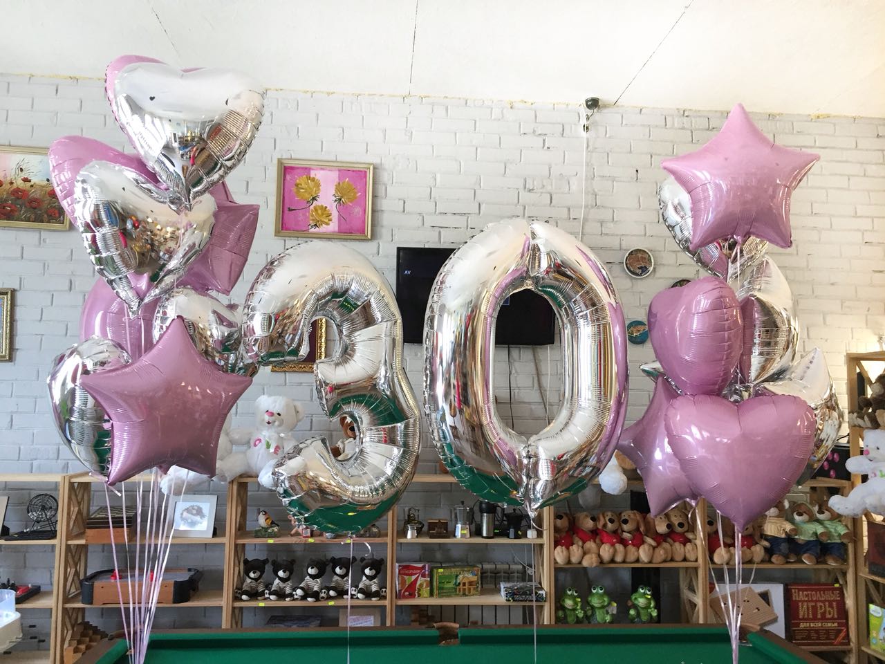 Набір; цифра фольга 100 см серебро 2 шт , фольга серце 8 шт (сірий та рожевий), фольга зірка 8 шт (сірий та рожевий)