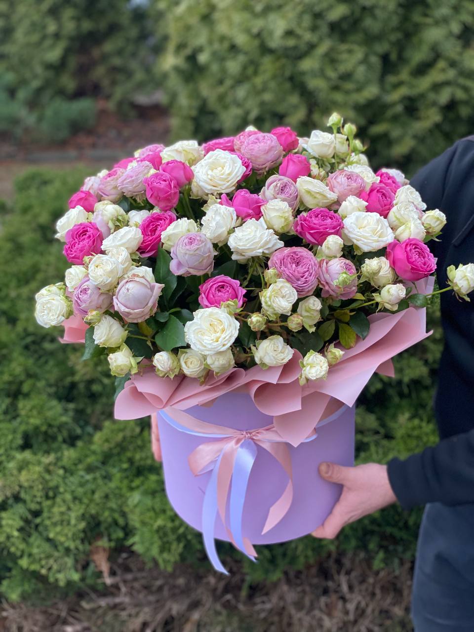 Hat Box size XL 51 Roses (Variety Miss Bombastic, Lavender Lace and Lavender)